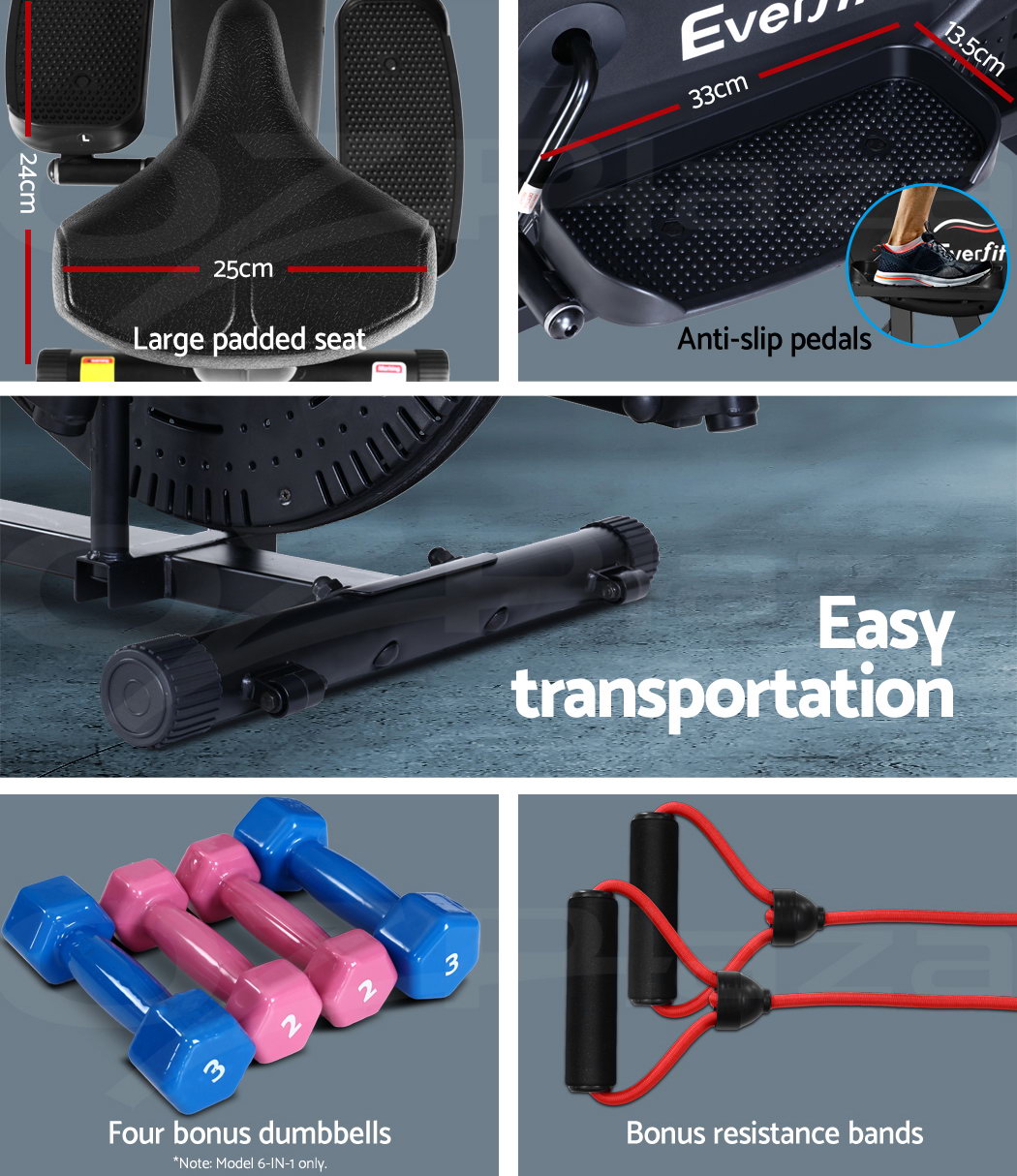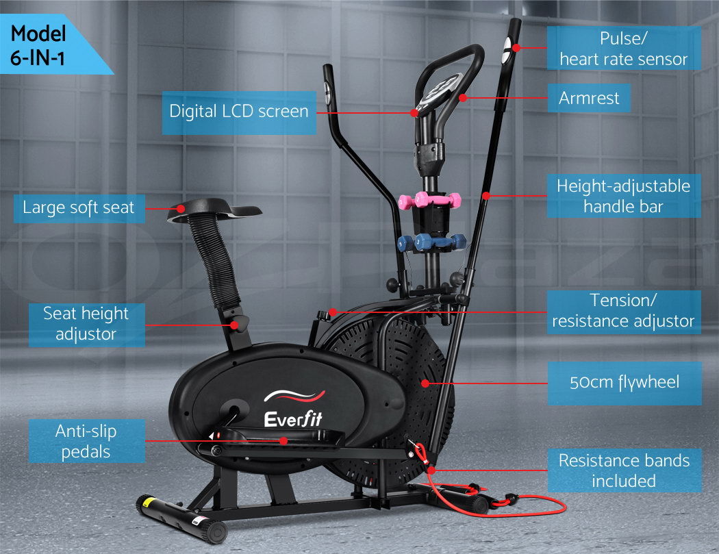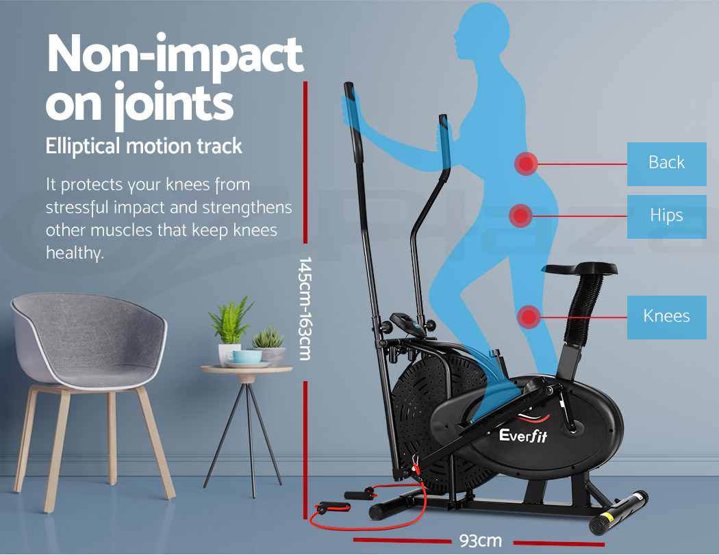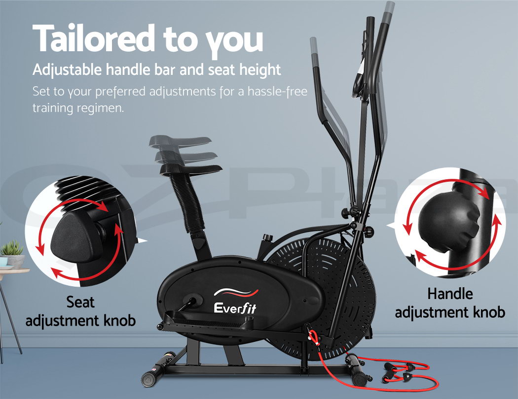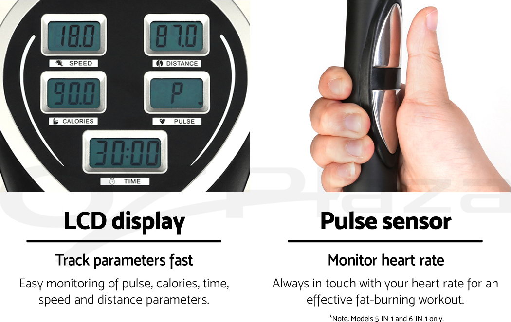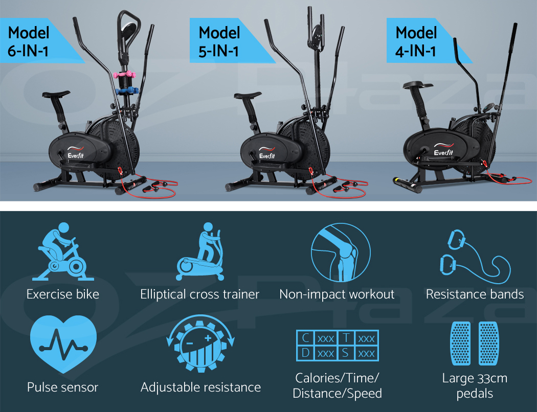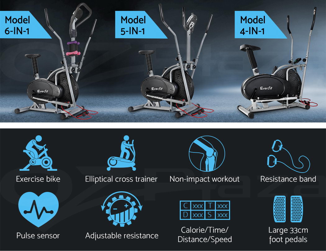 Elliptical cross trainers are excellent fitness machines for individuals who demand a training regime that works on all muscles and yet eliminates the risk of impact injuries such as treadmill running or walking. Hence the trainers are particularly helpful for those with joint problems with knees and feet. Our Everfit Elliptical Bikes are very efficient low-impact cross trainers that offer adjustable mechanical resistance to tone every muscle in your body. The easy-to-read LCD display lets you keep track of your training parameters. The industrial-strength powder-coated steel frame is strong and sturdy and the large seat is comfortable with every stride. Other great features include built-in pulse sensors, rubber-clad pole grips, reversible two-way movement and adjustable handlebar height and seat. Not least, the elliptical bike allows you to exercise whenever you want, anytime and anywhere. Three models are available.