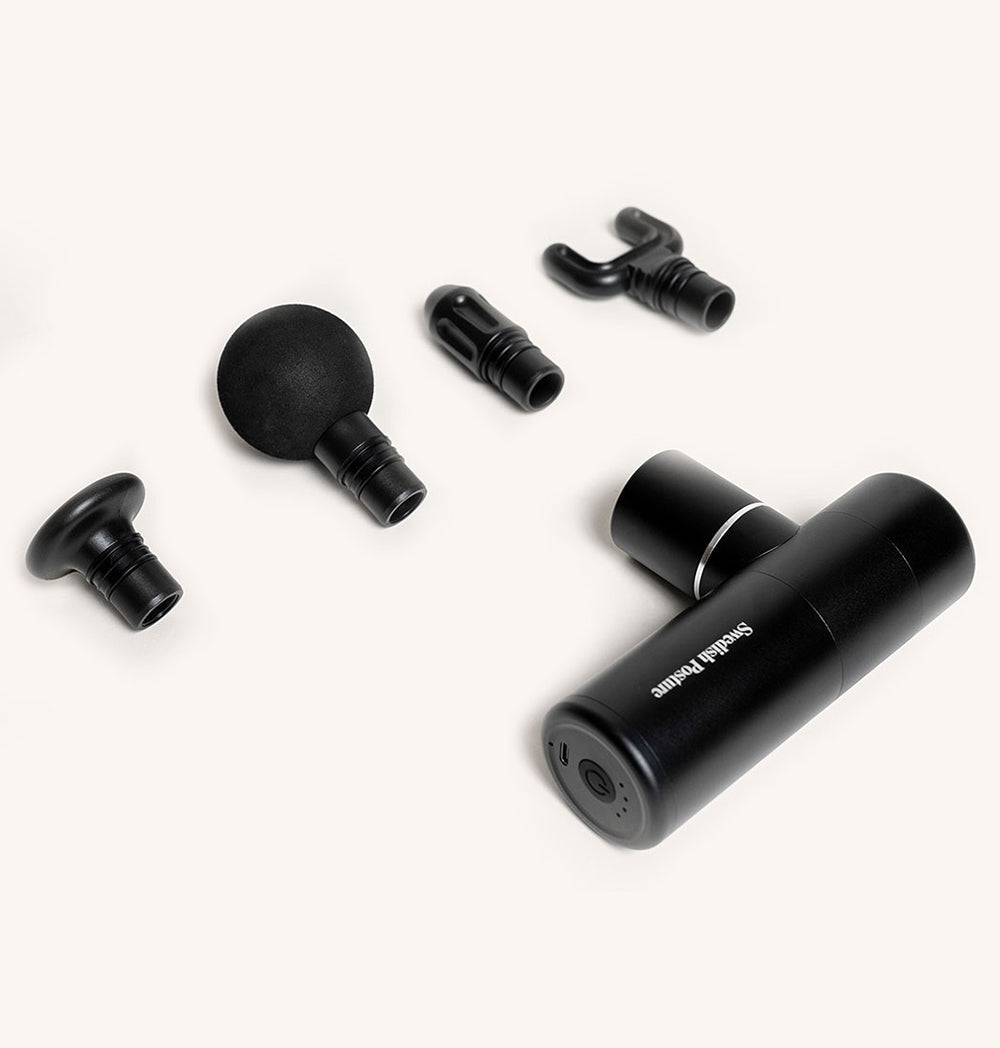 The Massage Gun Mini helps to relieve tight muscles, soreness and stiff backs. Great for personal use as well as being an ideal massage device for professional users. With the handheld design and 4 replacement heads it allows you to reach every muscle. You can easily adjust the speed and vibration level.